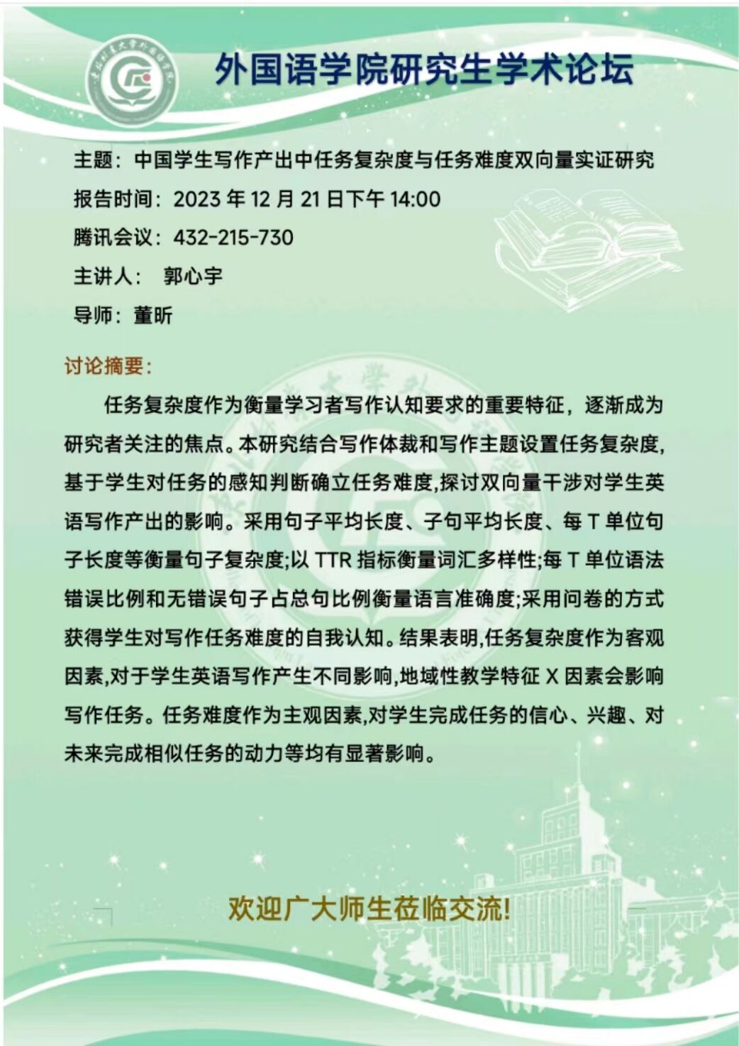 伟德国际1949始于英国研究生学术论坛——中国员工写作产出中任务复杂度与任务难度双向量实证研究