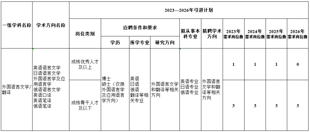 公司英语语言文学、俄语语言文学、日语语言文学和外国语言学及应用语言学学科均有招聘需求。鉴于学科及专业发展需要,翻译方向的应聘者优先考虑。业绩符合高层次岗位要求的应聘者,经公司考察和公司审核、评定后,按高层次岗位人才聘任。