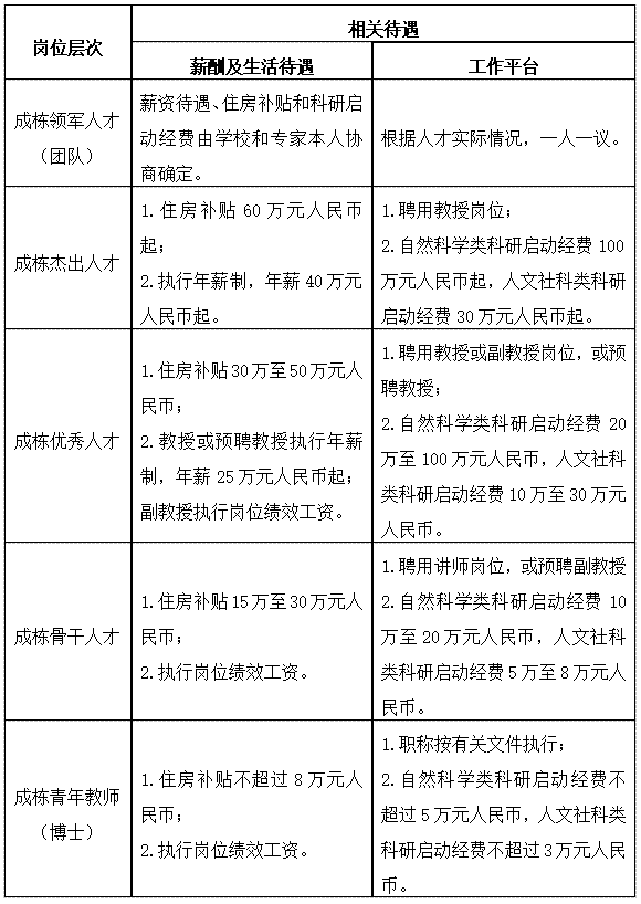 应聘条件及要求中教育背景和工作经历、研究背景和学术水平各人才层次要求如下: