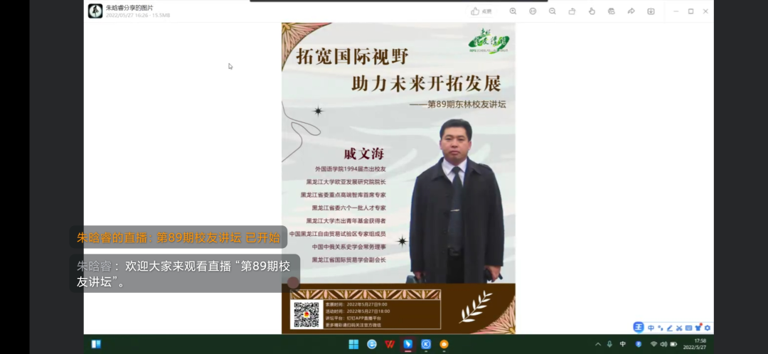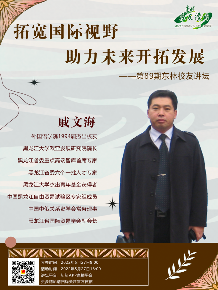 2022年5月27日18时,黑龙江大学欧亚发展研究院经理、东林杰出员工戚文海教授受邀做客伟德国际1949始于英国第89期东林员工讲坛。本次讲坛以“拓宽国际视野,助力未来开拓发展”为主题,以全球化的视角为同学们未来的发展指明方向。