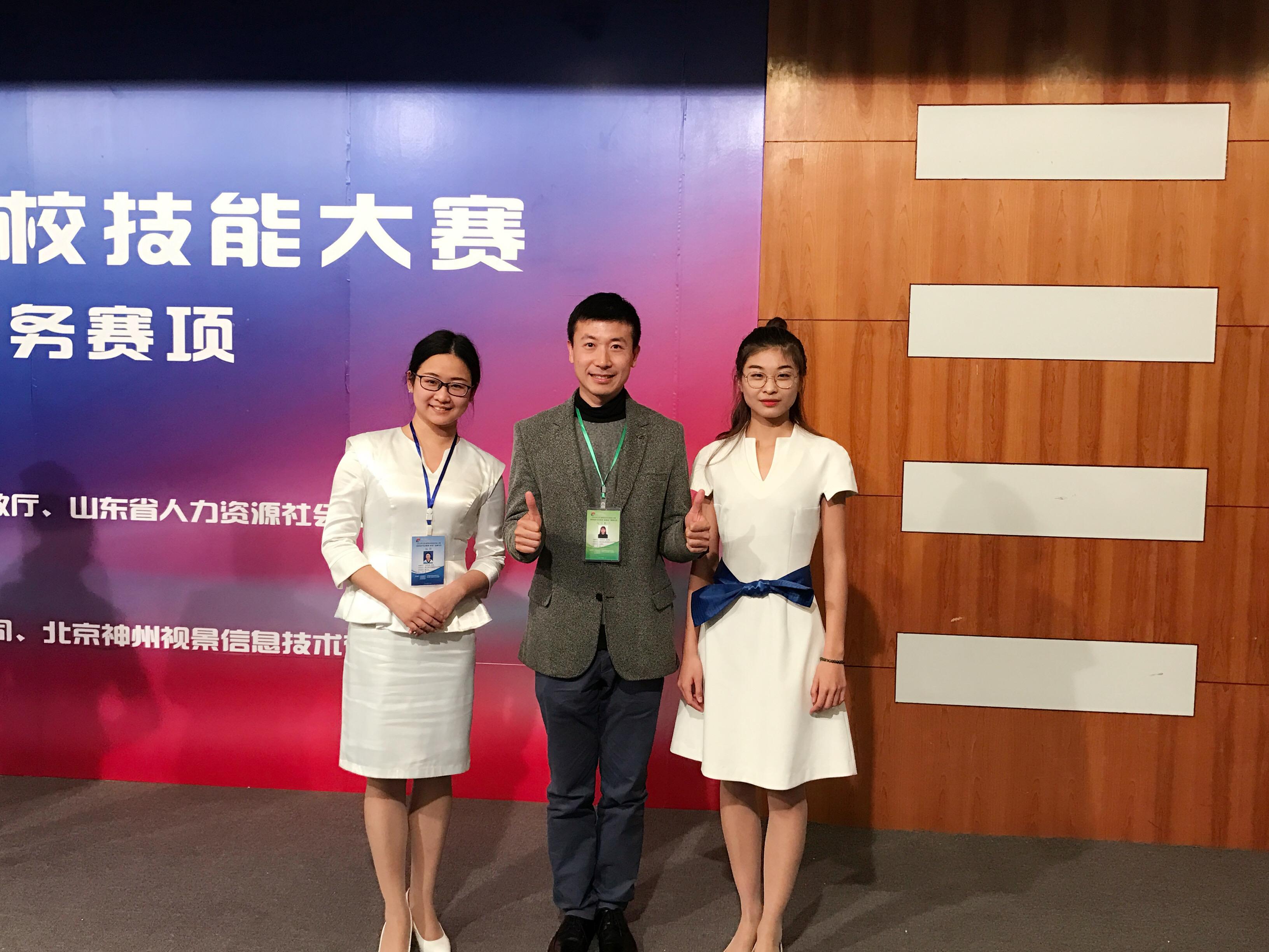 山东省高职高专职业技能大赛(英文导游)颁奖现场,我指导的两位同学获得比赛一等奖的第一名和第二名