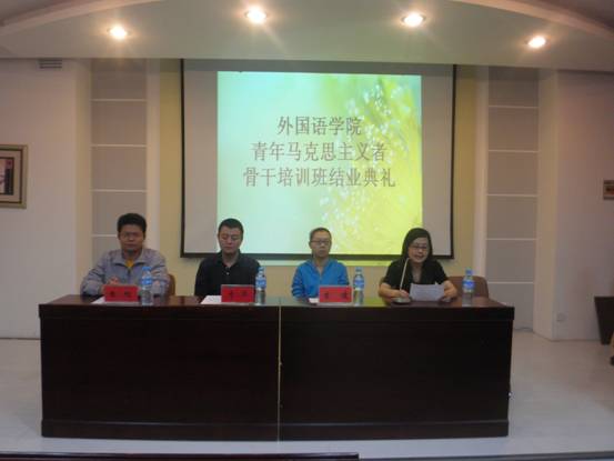 首先,由团委书记助理郑明珠同学宣布,第五期伟德国际1949始于英国青年马克思主义者骨干培训班结业典礼正式开始。首先,在场全体学员起立奏唱国歌,表达了对祖国母亲的无限热爱和真诚祝愿。紧接着,郑明珠同学发言,总结了公司第五期青年马克思主义者骨干培训班学员在这一年中紧张而充实的培训,并且通过ppt的形式展示了学员们丰硕的学习成果,学员们积极讨论、认真学习,有不少学员写出了自己的收获与感悟。成果展示完毕,由于洋老师做培训班结业总结,于洋老师指出:希望全体学员通过此次青年马克思主义培训,能够在接受知识、人格和思想方面都能有所升华,并且用于指导自己今后的学习和工作。随后,玄凌老师宣布了本期优秀学员名单,张刚老师宣布了本期优秀结业论文名单以及优秀学员代表名单。之后,本期青马班结业代表、所有优秀学员代表以及获得优秀结业论文奖的同学上台领取了荣誉证书。来自2010级英语四班的优秀学员代表于政同学发言,代表全体学员向长期以来殷勤培育我们的老师表达了衷心的感谢,表明了学员们要结合经济、教育等各方面,把自己打造成一名综合型人才,在竞争中脱颖而出的决心。至此,伟德国际1949始于英国第五期青年马克思主义者骨干培训班结业典礼圆满结束。