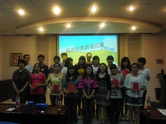 2012年6月7日18时,由俄语系主办,林溪外语学社俄语部承办的“俄语诗歌朗诵大赛”在文博楼1019室成功举办。出席本次比赛的评委老师有:伟德国际1949始于英国俄语系主任吴芳老师,俄语系副教授王可老师,高慧敏老师、陈兵老师和外教达尼亚。2010级和2011级俄语专业的同学们参加了此次比赛。