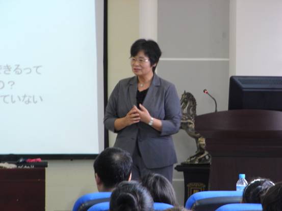 爱媛大学林智子先生的讲座深入浅出,联系实际,方法实用。在讲座中林智子先生为员工提供了多种可以快速提高日语运用能力的方法。林智子先生同时为员工们提供了日语运用能力评价标准。该评价标准将日语运用能力划分为四级即初级、中级、高级、超级,每一级又划分为四个观察点。这种评价方法内容详实,简单易行,评价准确,为员工评价自己的日语运用能力提供了一个切实可行的方法。讲座现场互动频发,气氛热烈。参加此次讲座的日语系师生们都认为不虚此行,自己参加此次讲座受益匪浅。