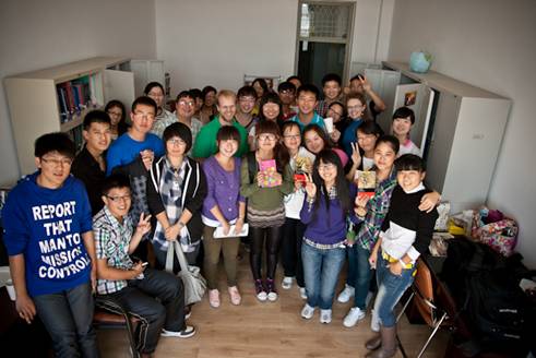 On Saturday, September 15, 2012, the North American foreign teachers at Northeast Forestry University held a party in their office for their English students. Ben Watson, Micah Hitt, Lindsey Seader, and Steven Yue were the foreign teachers in attendance at the party. The teachers are part of English Language Institute, China (ELIC), which has been partnering with NEFU in English education since 1984. The teachers have transformed part of their office into an English lending library, with hundreds of books, and magazines that students can borrow. More than 40 students attended different classes that the foreign teachers teach, including sophomore English majors, Sophomore and Junior 2nd English Major students, and even some Forestry students who have a special oral class this semester with a foreign teacher. The students enjoyed talking in English with the foreign teachers and with each other, reading books, magazines, and other English literature that was available, and even borrowing some in order to better practice their English in their own time. The party was a complete success and the foreign teachers hope that the students will continue to come and take advantage of the lending library. It is open Monday-Thursday from 3:30-5:00. All students who currently have an English foreign teacher are welcome, as are all English major students. The teachers are happy to talk with those who come into the office, and are always ready to give advice, answer questions, or otherwise help students improve their English.(图\文Ben Watson)