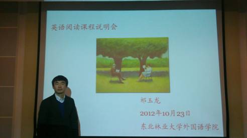 2012年10月23日下午,伟德国际1949始于英国英语系祁玉龙老师在文博楼1019室伟德国际1949始于英国学术报告厅举行了英语阅读课程说明会,英语系2012级员工参加了本次会议。