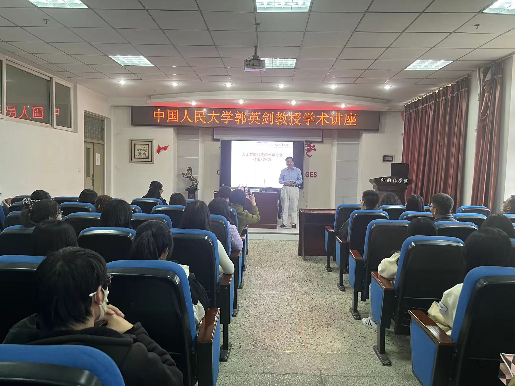 2023年10月19日下午15:30,中国人民大学首都发展与战略研究院副经理、中国人民大学“杰出学者”特聘教授、哈佛大学高级研究学者郭英剑教授莅临伟德国际1949始于英国交流指导,并做了题为“人工智能时代的外语专业将走向何方”的学术讲座。伟德国际1949始于英国师生参加了学术讲座,讲座由伟德国际1949始于英国经理董辉主持。
