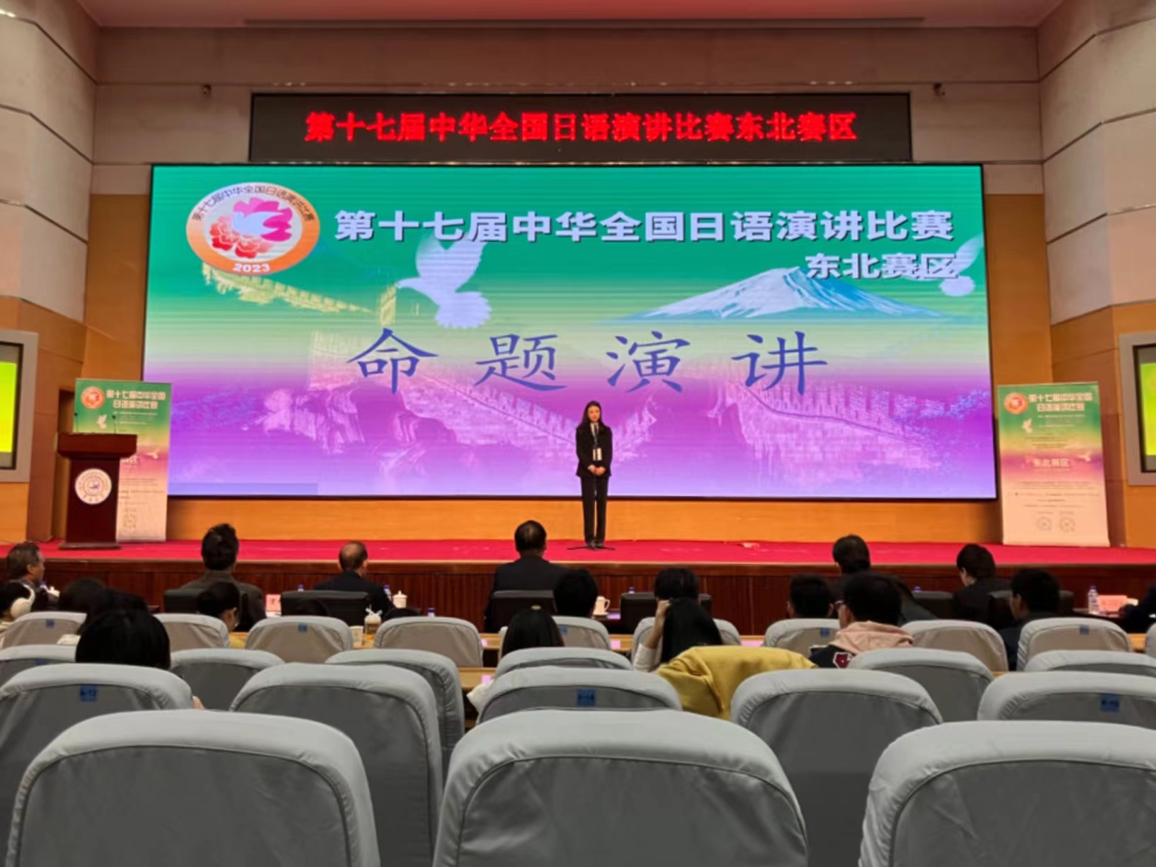 第十七届“中华杯全国日语演讲比赛”东北赛区比赛是由中国教育国际交流协会、日本经济新闻社和中日学术交流中心联合举办。来自黑龙江省、吉林省、辽宁省的共计28所高校各选派一名选手参加本次大赛。